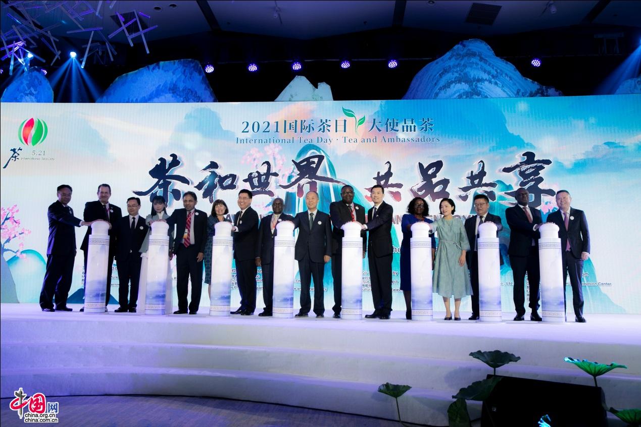 活動最后,中外嘉賓代表共同點亮“2021國際茶日”字樣,向全球茶人送上節日的祝福。
